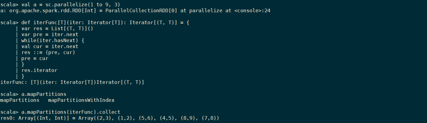 iterfunc把分区中一个元素和他的下个元素组成一个Turple