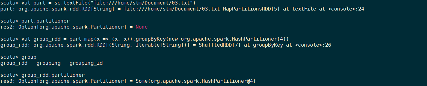 RDD划分很多的分区(partition)分布到集群的节点中,分区的多少涉及对这个RDD进行并行计算的粒度。分区是个逻辑概念。用户可以在读取文件时指定分区数目。默认数值是改程序所分配到的CPU核数,如果从HDFS进行创建,则默认为文件的副本数。