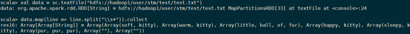 spark运行的操作。spark中行动操作分为两类:一类的操作结果变成scala集合或变量,另一类的操作是将RDD保存到外部文件系统或者数据库中。