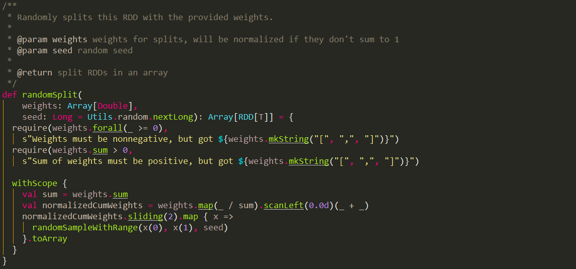 repartition:是coalesce第二个参数为True时的实现。randomSplit: