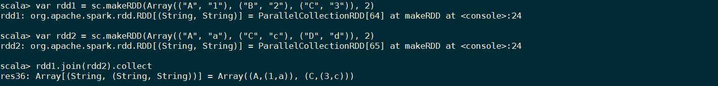 reduceByKeyLocally:同reduceByKey,不过是将结果映射到一个Map[K, V]中。join、fullOuterJoin、leftOuterJoin、rightOuterJoin:join内连接操作: